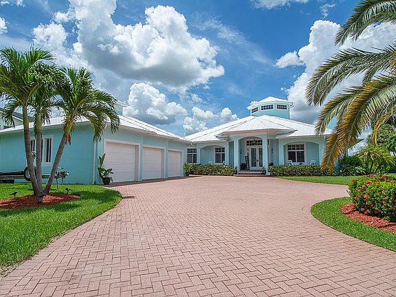 Breathtaking WIDE WATERFRONT home w/ BEAUTIFUL WESTERN EXPOSURE w/ STUNNING SUNSETS! Pool/spa turnkey home overlooking St. Lucie River. This freshly painted 3/2.5 home features a true 3 car garage w/ bonus room + den/office. Upgraded fixtures, custom wall, smart design color-changing lights & fireplace in LR; New shiplap wall in DR & custom accent wall in BR2; New custom countertops & backsplash in Kitchen; Custom stenciled walls, 2 built-in bookcases & desk/workspace in office; Summer Kitchen, custom 8-person bar & remodeled pool w/ new stone, replaster, jandy lights, pool heater (all controlled by smart device); Up Lighting in front & rear of home; Fresh Paint, epoxy floor & backsplash in custom gym w/ shock absorbent floor & accent wall in garage (equipment excluded). New Wear Deck Dock w/ new 12k LB boatlift (includes water & electricity); Perfect for all your boating, fishing & water sport adventures! Complete Impact glass w/ accordion shutters for patio sliders. NO HOA!