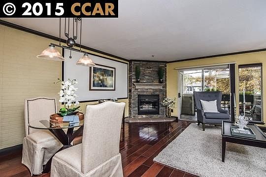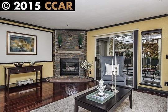 Trendy chic condo in Walnut Creek's City Oaks secure complex!! Elevator building for easy move in. Stunning slate floor to ceiling fireplace fa??ade; granite counters in kitchen and baths; kitchen with full backsplash; shiny cherrywood wide planked flooring; don't miss!! Come to Open House Sun 1-4!!