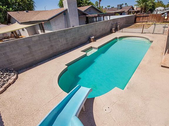 Newer roof, newer flooring, new interior paint, new dishwasher. Courtyard entry to newer custom front door and foyer. Open floor plan with French doors to patio and pool with slide. Pool is fenced away from play yard. Metal storage shed. Indoor laundry room with lots of storage. Full hall bathroom with granite counter top. Walk in closet in master bedroom and master bathroom has tiled shower. Beautifully located off Avenue B and 24th St. near Walmart, Albertsons, close to hospital & shopping.