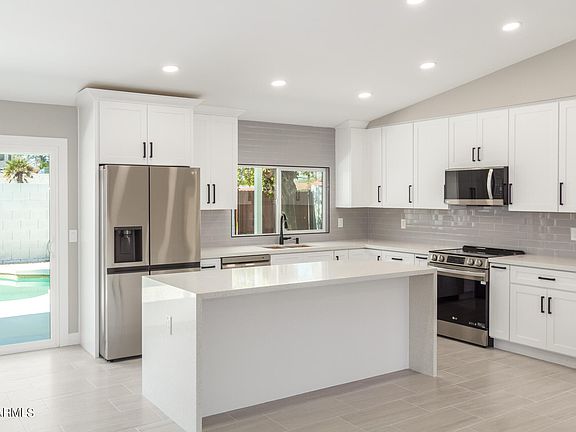 Stunning 3bed 2 bath fully remodeled home! Spacious living spaces and open floorplan. Elegant kitchen with quartz counters, waterfall island, shaker soft closing cabinets complimented by a beautiful subway tile backsplash, under cabinet lighting and SS appliances. In the bathrooms you will find custom tiled showers, quartz counters, dual flush toilets. Home has been freshly painted inside and out and all doors and windows have been replaced. As if that is not enough, the backyard will be your very own oasis with a pool for those hot summer days and a fire pit area for the chilling days. This home is absolutely move in ready! Just bring your belongings. Quiet non HOA neighborhood, close to ASU, MCC, shopping, dining and parks. Close to the 101, get anywhere in the valley within minutes...