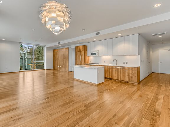 Stunning, light-filled corner unit in the coveted Holst Architecture designed Clinton Condominiums. True 2 bed/2 bath. Expansive open floor plan with high ceilings, floor-to-ceiling windows, walnut flooring and finishes. Upgraded quartz countertops and backsplash and radiant floor heating in bathrooms. Sleek & modern design. Lots of closet & storage space. West-facing deck with city views. Bright primary suite offers a spacious bathroom with walk-in shower. Second bathroom features deep, soaking tub. Deeded garage space within secure, gated lot. Easy and quick access to New Seasons Market, parks, movie theatre, and sought after restaurants. Little T Bakery and coffee shop is below you. Walk score 96, bike score 94.