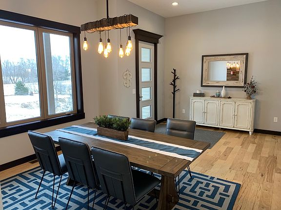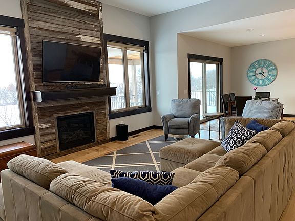 Beautiful custom built 1 & 1/2 story home in Runnells, just 2 years old. Bright and open layout with 2,260 sq ft of finish on 4.12 acres. Great room has fireplace and large windows with wooded views. Gourmet kitchen with white custom cabinets, center island, granite counters, tiled backsplash & stainless steel appliances plus extra kitchenette with wine fridge in mudroom. Great room and entry way/dining room have 11' ceilings. Master bedroom includes huge master bath with double vanity, jet tub, and a custom wood closet with built in dresser. Upstairs includes two bedrooms, loft area and bathroom. Large covered deck with cement pad underneath and walkout lower level. Huge windows throughout allow for ample natural light. Lower level has 9' ceilings, is insulated and ready for finish. Includes tornado safe room with built in shelves for storage. Call 515.577.1467 for a showing.