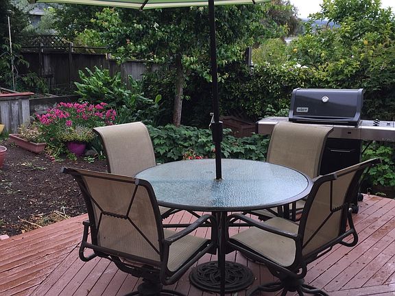 Charming 2 bedroom, one bath house in quiet, nice neighborhood with great neighbors. Pretty views of sunsets from the living room and porch, sunrises from the kitchen. Has a living room, dining room, kitchen/office, laundry room, small bonus room, one car garage, nice private yard with hot tub, Wood floors and carpeting. Beautiful tiled bathroom. Dishwasher, washer/dryer, central heat and air conditioning, alarm, Dog friendly. This house is walking distance to Farmer Joe's, Safeway, Pete's coffee, other coffee and tea cafes, restaurants, post office, library, banks, diamond park, Sequoia Elementary School, Head Royce, and Montessori schools, EBRPD land for hiking, and more! An additional $200 will be charged for pge, water, garbage, wifi, 1x a month yardwork. Landlady lives in basement. Rent is $3,300 plus $200 for pge,, garbage, water, and wifi, doesn't cover cable tv. Dogs OK. Credit check required, No smoking, Quiet, one year lease, no evictions.