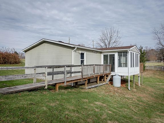 Lovely views on over 1 acre for this convenient and accessible 3 bedroom low maintenance ranch style home with gas log fireplace and many upgrades including quality replacement windows, architectural shingle roof, sun-room with gas heater, heat pump, all appliances included and to pass as-is, remodeled bath with sit down shower, accessible ramp to house from detached carport.
