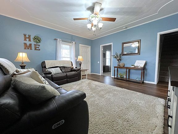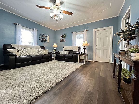 Welcome to this freshly updated 3-bed, 1-bath home on the south side. From the covered front porch step into the Living Room that features high ceilings with a tray application and ceiling fan. The LR leads into the well-appointed Kitchen with many updates. It features new countertops and a sink along with a new range with an over-mount microwave, and refrigerator plus a coffee bar with additional cabinets and a built-in corner hutch along with a pantry closet for additional storage. The Primary Bedroom on the main level has new flooring and paint. The upstairs space is versatile whether you need bedrooms, a playroom, an office, or a craft room. The fenced backyard leads to the 2-car Garage which has new siding, new garage doors, and an opener. The Basement offers storage and a laundry area. It has been painted top-to-bottom and features updated lighting – so no dreary basement! The seller has done several updates since 2021 including new windows, flooring & paint, & gutters all within the past 2 years.