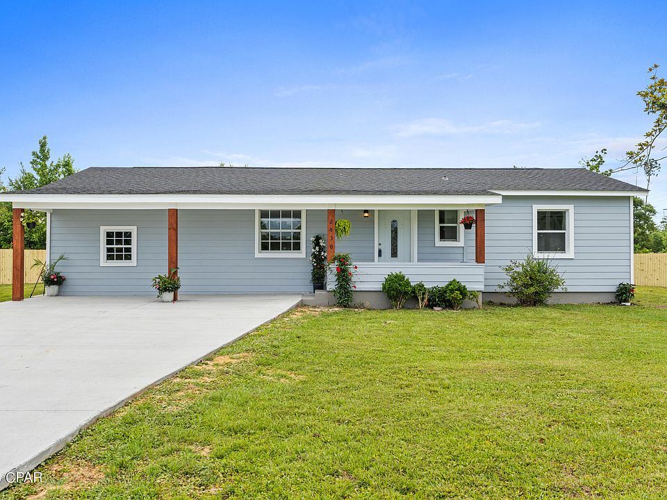 Looking for new, but don't want to spend the money for a brand-new house? This is it! This home has been remodeled to include a new roof, new bathrooms, new LVP floor covering, new interior doors, new driveway, new windows, new hardi-board siding, new fixtures, fresh paint, updated plumbing/electrical, updated a/c and more! The property features a large backyard with a brand-new privacy fence on the back and sides. The split floor plan allows for privacy with a spacious bedroom with walk-in closet on one side and the other two bedrooms and bathrooms on the other. It will qualify for all types of financing: USDA, VA, FHA, Conventional! The neighborhood is developing and is filled with brand new constructions homes. Located 20 minutes to Tyndall AFB and less than 45 minutes to the beach!