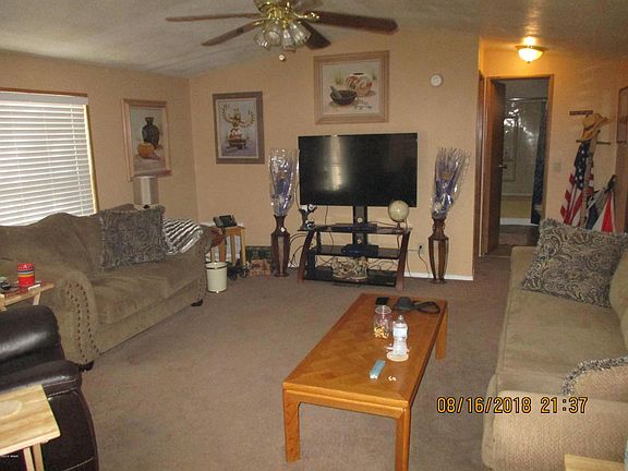 Single wide mobile home with nice add on. Two Master bedroom suites and a third guest bathroom. Large open living room, sliding glass door off of kitchen that leads to deck, shed and air conditioning. Close to town and Show Low Park.