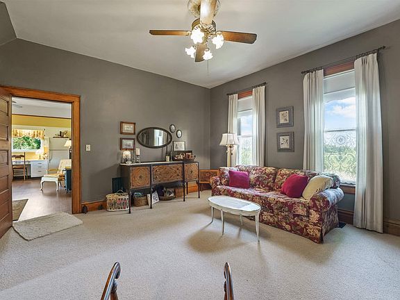 * Multiple offer situation, all offers over list price * A Hoosier Homestead on 2 acres, named by the Indiana Department of Agriculture. House owned by same family for over 100 years, with original deed and plat book. Farmhouse has slate roof, oak woodwork and built-ins, and 12-panel oak pocket door. Transoms on most doors and original hardware. Large oak pocket door, newer windows. GFA/CA new in 2012. Screened porch, first floor laundry, and 2 full baths. Two acres of landscaped yard with original corn crib, barn with metal roof and milk house, and garage. Whole house water filter system, reverse osmosis system, and softener all stay. Septic and 2 wells. Average electric $1800/year, average gas $720/year, electric water heater rental approx $240. Lovely landscaping, perennial gardens, vegetable gardens. Youll enjoy the beautiful views from the covered porch, screened porch, or anywhere on the property.