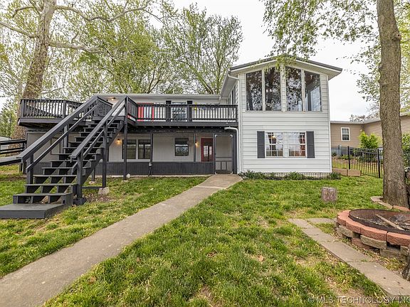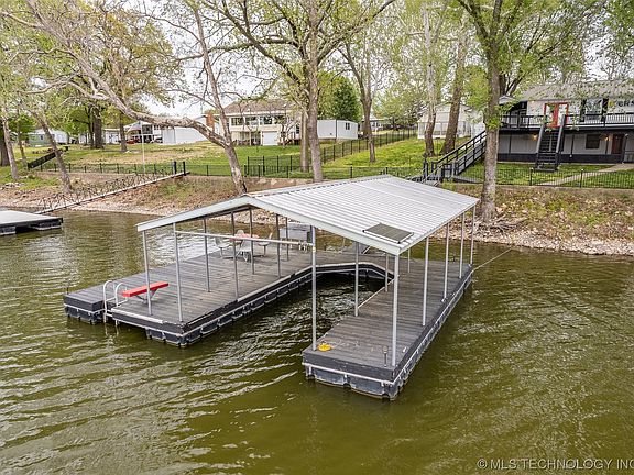 This beautiful Grand Lake home offers amazing waterfront views and so much more! Beautifully remodeled home, covered boat dock with single slip and swim platform and a 24 x 40 shop. Approximately 105' of lakefront views. The spacious home has 3 bedrooms, 2 baths, 2 car attached garage. The gorgeous kitchen is open to the dining/living areas, all offering views. Plus an additional living/rec room downstairs. Enjoy the outside from the large deck, screened in porch and fenced yard with cozy fire pit. Some recent additions include roll-in shower and handicap chair lift on the stairs and ramps. Many more updates!
