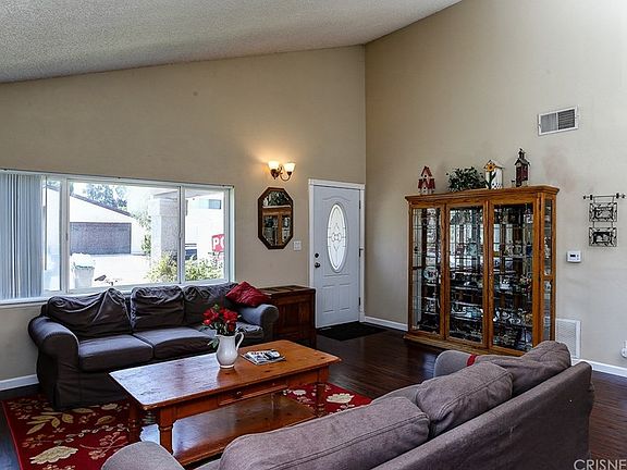 Nicely Updated single story Valencia Home! This beautiful corner lot home has 3 bedrooms plus 2 baths with NO HOA and NO melllo-roos! The light & open kitchen is very spacious and has been remodeled with granite counters and gorgeous back-splash, built-in desk area with granite counters and back-splash, newer stainless steel appliances, center island and plenty of cabinet space. Laminate flooring through out most of home except in kitchen and bathrooms which have tile flooring. The living room has vaulted ceilings, fireplace and sliding door access to inviting side patio. Master bedroom has sliding door to backyard patio, walk in closet & upgraded master bathroom. Home has copper plumbing, new exterior paint, newer A/C, dual pane windows throughout most of home. Spacious back yard with two side patio's. Centrally located near schools, parks, shopping & dining, easy access to freeway.