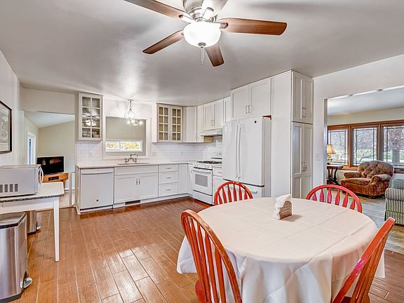 Charming Ranch on 2 acres with a pole barn! This home boasts hardwood and tile floors, a new kitchen with white cabinetry and Quartz countertops. Enjoy a family room with a vaulted ceiling and a cozy wood-burning stove. Generously sized bedrooms, a remodeled bathroom with a refinished tub and heated floors. Relax in the beautiful 3-season room off the kitchen. The unfinished basement houses an updated furnace, AC, tankless water heater, and water softener. Outside, find a detached 2+ car garage with attached dog kennels and a pole barn featuring 4 horse stalls. Newer siding and Pella windows complete this delightful property.