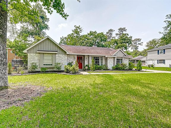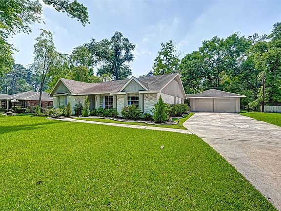 This exceptional home sits on almost 1/4 acre, yet 7 minutes to Mitchell Pavilion and The Woodlands Waterway! Impeccable 3/2/2 det. Designer created incredible custom spaces inside and out. German smear brick exterior With an array of upgrades and custom features. Level 3 luxury granite and mosaic backsplash, designer color palettes. FP added in primary Bedrm w/ remote and vintage FP surround. Hickory plank flooring throughout home, no carpet here! Beveled glass solid front door. Primary bath completed remodeled 12/20, well appointed w/ lg frameless shower, free standing cabinetry w/ soft closing doors. Designer patterned porcelain flooring. New fixtures throughout. Custom landscaping front and back. Huge back patio with large custom gazebo, perfect for entertaining. Come take a look and make it yours today!
