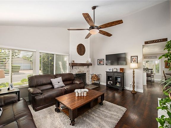 This Valencia Tempo home has been beautifully upgraded throughout, with fresh paint inside & out making this feel like a model home! As you walk in, you're greeted by wood flooring & a beautiful stone fireplace in the family room. The remodeled kitchen features shiplap, recessed lighting, new stainless steel appliances & gorgeous granite countertops. Both bathrooms have been upgraded with wonderful finishes including granite countertops & new vanities. All bedrooms offer ceiling fans & both secondary bedrooms have barn doors. In the master suite, you will find big windows, a shiplap wall & custom lighting, & a large walk in closet with recessed lighting. The backyard has been well maintained with a lush, green lawn & fruit trees, perfect for kids or pets as you enjoy your evenings on the covered patio. The garage is a dream with custom storage cabinets & epoxy floors! In addition to wonderful finish work, this home features many other upgrades including a new furnace & water heater, a keyless front door & garage door, & net attic insulation. To stay cool in the summer, there is new air conditioning equipment & ducting, a whole house fan, AND all new windows for better insulation! This is a wonderful community that truly shows pride of ownership with NO HOA! Located in the heart of Valencia just a short drive from both Westfield Valencia Town Center & Old Town Newhall both with wonderful options for shopping & dining. Easy access to freeways & local schools.