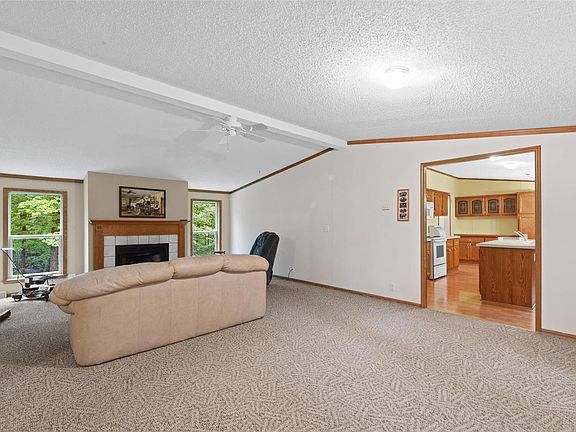 Welcome home to this 3 bed 2 bath split bedroom double wide home on 3 private acres! Outside you will see the fully wooded lot with 3 outbuildings. Keep warm in the winter in the detached garage with the wood burning stove. Inside this beautiful home you will see the huge kitchen with laminate flooring, a separate mudroom and laundry room, Master bedroom has a huge closet. Enjoy your view of the woods behind the house as you sit by the fireplace in the family room. Seller is offering an HSA Home Warranty!