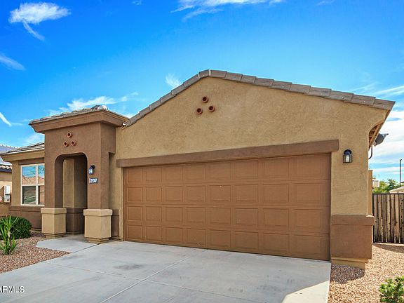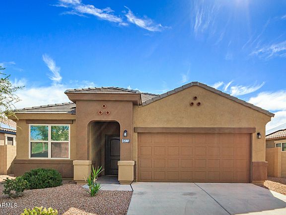 Immaculate like-new home w/neutral palette, fresh professional paint thru-out, 16'' tile in all the right places & brand-new carpet in all bdrms! Super chef's kitchen w/granite counters, large breakfast bar, smooth top self-cleaning range w/MWO above, SS refrigerator, lots of espresso cabinetry + walk-in pantry & brand-new dishwasher. Popular split floorplan featuring elegant master suite w/private retreat/sitting rm & ensuite bthrm w/large walk-in shower, dual vanity & roomy master closet. Outside awaits a perfect retreat w/a covered patio & easy upkeep landscaping. All this in great Blue Hills location w/easy commute access to I-10 & close to downtown Buckeye. **Seller will offer 2% credit for interest rate reduction w/your lender. Save $100s on your monthly mortgage payment.**