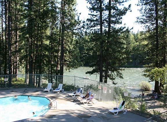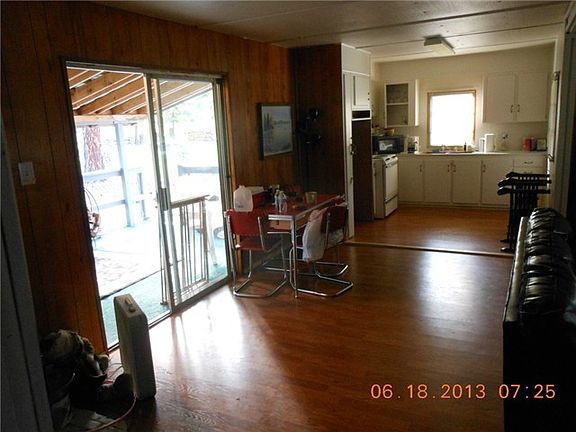 Great Getaway in the Ponderosa With swimming pool, The river just accross the street from cabin,This Home is a Manufactored Home/Single wide with custom built addition with living room, Open kitchen and living room with wood fireplace to covered deck, three rooms with two large shop areas out back, this lot is located in the best spot, walking distance to Pool house and River a rock throw away. Recently added front deck, and new flooring inside. Two Shops and storage areas for all the toys.