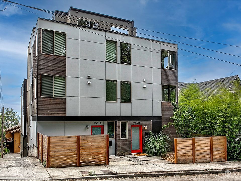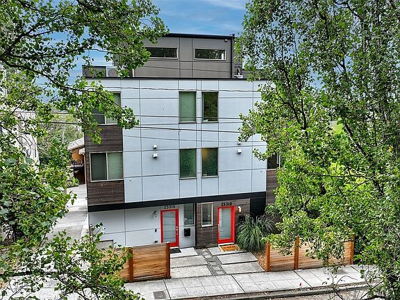 Modern living and the PNW skyline meet in this spacious 2 bdrm, 2.25 bth, home with a garage! Welcoming you with expansive windows this living room is a light & bright while private, retreat. Enjoy modern amenities including a Chef's kitchen with quartz countertops, a Bertazzoni range & stainless steel appliances. Primary suite and add'l bedroom, with separate bath, are located on the upper floor. Corner unit allows for gracious windows w/ flowing sunshine and tranquil treehouse views. Entertain from the roof top deck and watch the sunset with panoramic views of the Olympic Mountains, Puget Sound & the downtown Seattle skyline. This home is located on a quiet street across from a small green belt. A 0.2 mile walk to the Light Rail Station.