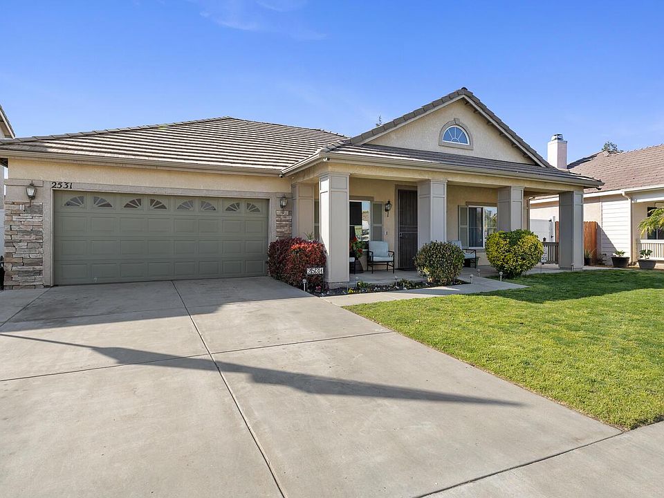 Tulare Beauty in Del Lago. One of Tulare's most sought after neighborhoods. This home is recently upgraded with granite countertops in the kitchen and bathrooms. Boasting 5 large bedrooms -2 of which are a Jack and Jill combination with their own huge, must see, walk in shower. These bonus rooms can also be used as a mother in law or teenage unit because one of the rooms has a side door entry. So much storage. You will love the ambience of this home although it's a very spacious home its very cozy and very well taken care of. Owners suite is huge with a nice walk in closet and double sinks in the bathroom. Living room is open to the kitchen which is great for entertaining. Back yard is low maintenance with a covered patio, dog-run, RV access from the back and RV dump. Shed in the backyard is staying. The garage has built in shelving for the carpenter in you. There are 2 air conditioning/heating unit for maximum comfort. All this and the 36 solar panels will be paid off in escrow
