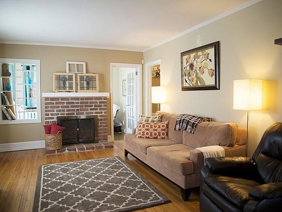 Nestled at the intersection of Adorable and Charming, this renovated bungalow is larger than it appears! The main floor has an inviting LR with hdwd floors and brick FP! Your sun filled DR is nestled next to your newly renovatd KIT that boasts stainless, granite, porcelain tile, and access to your patio and fenced yard! Your 2nd level boasts a spacious bedroom and 1 of 2 bonus rooms! There is plenty of space to easily add a 2nd bath and create a pvt owner's suite! Your roof, HVAC, kitchen, and windows are just a few years young! Welcome home!