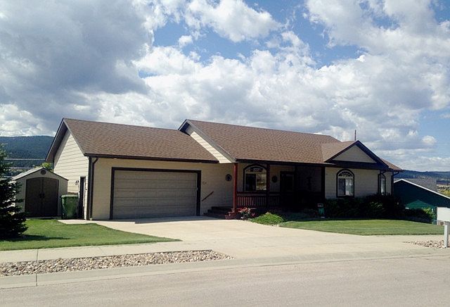 2531 Belair Drive, Sturgis Like new, this 4BR/3BA home sits on a 0.28 acre lot with magnificent views of the Black Hills! A quick step out onto the main-level, open balcony is sure to amaze! A full, finished basement, master suite with walk-in closet, two-car, attached garage, gas-log fireplace and large living areas complete this beautiful, 2,842 sq. ft. home. Quality appliances are included in the 10 x 11 ft. kitchen, a newer washer and dryer set in the basement, along with a detached shed on the property. A great location with rock landscape, making for easy maintenance and a solid purchase!