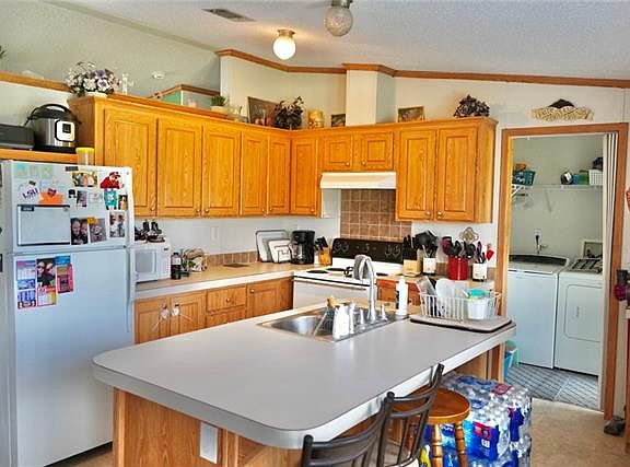 Well maintained 3 bed 2 bath manufactured home on 1/3 of an acre. Open split floor plan with large master suite. Home features an Eat-in kitchen with large island, Large master closet, bathroom, and soaking tub. Back yard features a closed in back porch with store shed. Home has wheelchair access front porch. Flood zone X