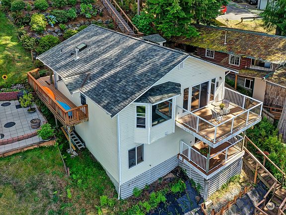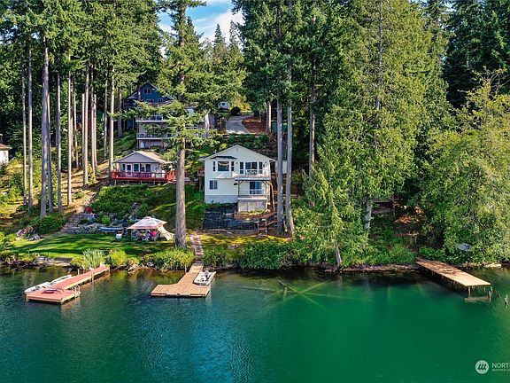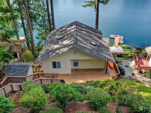 $15,000 CREDIT TO BUYER at closing with full price offer! Buy down rate! Nestled on the pristine shores of Lake Ki, one of the area’s clearest lakes, is this opportunity with 60 ft of waterfront! Panoramic lake & mountain views, incredible sunsets, & watch eagles soar from the 2 decks or the living room windows. Step inside and see the wide open main floor with vaulted ceilings, skylights, & a bay window, bathing the space in natural light. The kitchen, living room, a bedroom, & full bath complete this level. Downstairs is the primary suite with it's own WIC & 5 pc bath, a versatile bonus room or possible 3rd bdrm, & the rec room. Brand new furnace & water heater! Lake fishing, swimming, paddle boarding, kayaking, boating or just relaxing!
