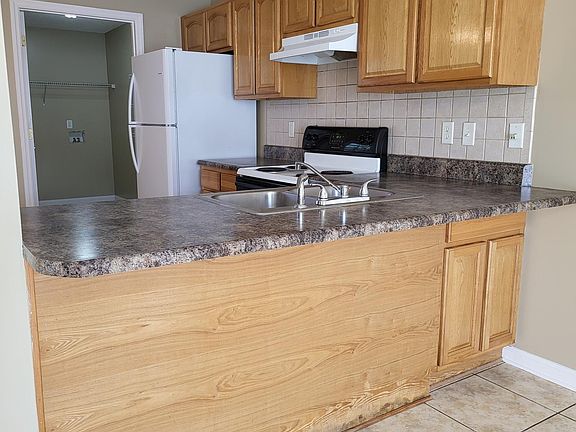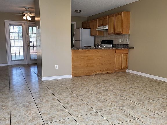 Great open floor planBar seatingKitchen with tile flooringCeiling fanNice size laundry room