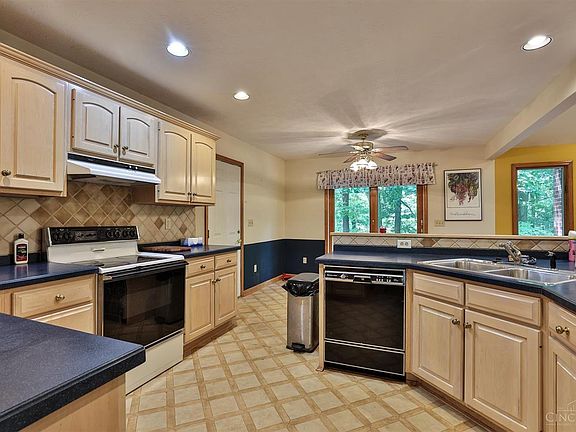 Estate sale. Large brick home on 5 acre wooded lot. 3 bedrooms, 2.5 baths, full basement w/ walk out. Two car attached garage, vaulted ceiling in family room, plus new skylights. New roof this year!