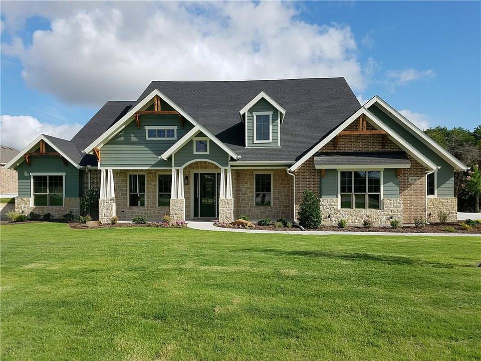 Beautiful home in Bryson Springs Estates features 4 bedrooms, 3 and a half baths, study, game room, large covered back patio and an oversized 3 car garage. Open floor plan has wood look tile floors and a fireplace with floor to ceiling stone in the family room. The beautiful kitchen features granite counter tops, 36 inch electric cooktop, double oven, walk in pantry, and a large island. The master suite has a soaking tub, large walk through double shower, separate vanities, walk in closet and direct access to laundry room. Large 1 acre lot with trees.