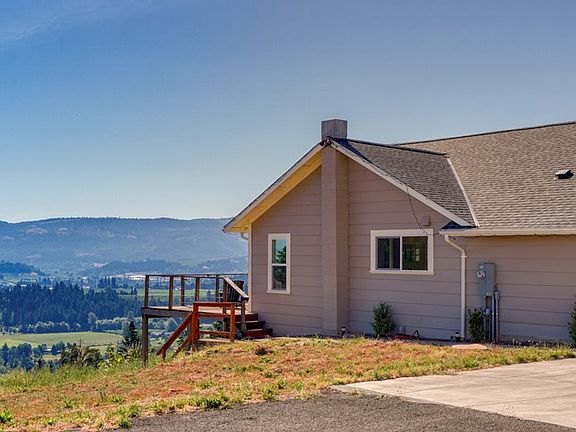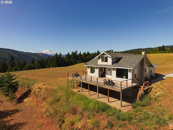 Massive landscape boldly showcases impressive panoramic view of Hood River Valley, Mt. Hood, and Bins Hill. 3 Bedroom, 2 bath with mountain views from every bedroom makes the perfect guest house while you build your dream home. 6 bay Garage/Shop with plenty of space for all your toys. Daylight unfinished basement offer more room to expand. You must see this property!