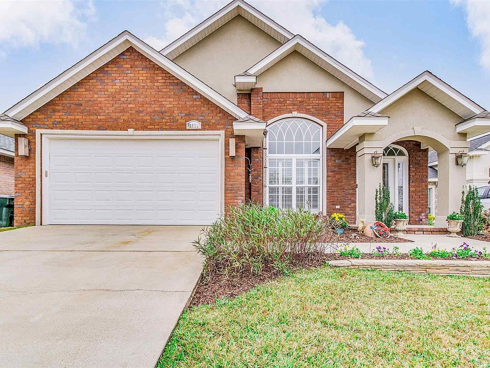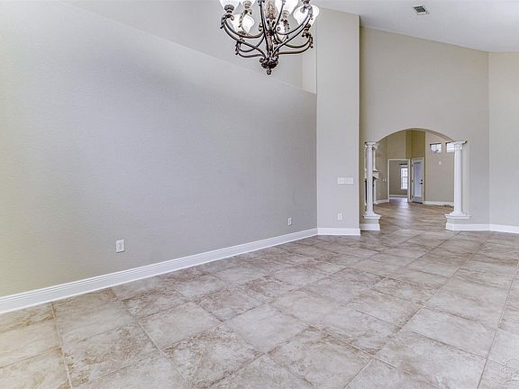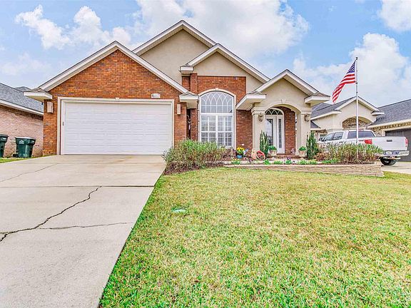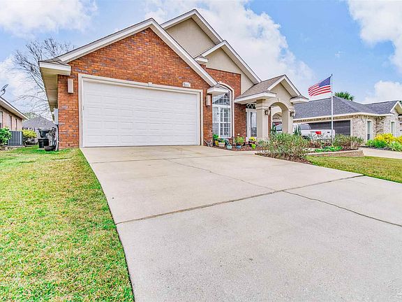 Come see this beautifully maintained home in the King Ridge Subdivision in Cantonment. This home invites you in with 15ft ceilings heights, that offer a grand first impression! Upon entering, you are greeted with a formal dining room and living room that feature lighted plant ledges and niches, plantation shutters and natural light that gives an open and airy feel. The 19 x 19 Italian tile runs throughout the entire home and adds to the grand feel the home embodies. The family room is open to the kitchen, offering ongoing sightlines of the open concept living area that has a gas fireplace and is wired for surround sound. The kitchen is well equipped, featuring stainless appliances, a nice sized pantry, a breakfast bar, granite and maple cabinetry which offers plenty of storage. In the owner's suite, your attention is immediately directed to the box ceilings and the amount of space the room provides. The owner's bath has a jetted garden tub and a stand-alone tiled walk-in shower and a dual vanity. The large walk-in closet has ample space. You'll appreciate the split floor plan which offers extensive privacy. The two additional bedrooms also feature the 19x19 Italian tile, ceiling fans, and large closet space. In the guest bath, you will find a tub/shower combination, and a pedestal sink. If you enjoy an outdoor living space, this home has a beautiful covered porch that can be accessed from the owners suite or the family room. A large level backyard is beautifully landscaped and comes complete with the most perfect playset any child is sure to love!