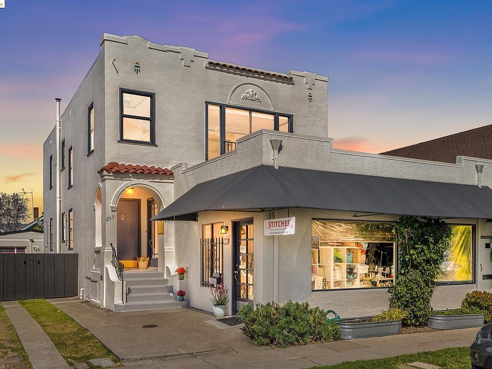 Rarely do such remarkable Alameda investment opportunities arise, presenting 2531 Santa Clara Ave, a multi-use property with 4 units. Between Broadway and Park St, it features a VACANT Duplex, an ADU, and a commercial storefront. The duplex exudes charm, each unit with a large one bedroom and one bathroom, complete with gorgeous built-ins. The upper unit, ideal for owners, has a spacious layout with a large living and dining rooms, complete with built-ins and a fireplace with hardwood floors throughout. An additional den/office space adjoins the living room, while the updated kitchen boasts stone countertops with vibrant and stainless steel appliances, a pantry and laundry. The updated bathroom features a tiled shower. On the lower level is a large spacious living and dining room with fireplace and built-ins. The kitchen has a cozy breakfast nook. The bathroom is updated with a tile shower. A sizable backyard and two large basement rooms offer ample storage, while off-street parking and a one-car garage provide convenience. A studio ADU at the rear, currently leased, comes with a private side yard. Finally, the commercial storefront, enjoying excellent visibility, is also leased. Fully equipped and primed for the next venture, it caters to owner occupants, investors, and more.