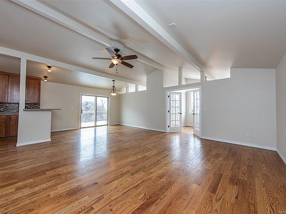 This beautiful ranch home in Bridlewood sits on over a quarter of an acre of land and has lovely mountain views. As you enter this home you are greeted with beautiful wood floors throughout the kitchen, living room, dining room, and sunroom. On the main level, you will find an open floor plan with vaulted ceilings, giving this home a bright and open feeling. The kitchen has 42" custom cabinets, granite countertops, and a tile backsplash, as well as a counter bar for extra seating. The dining room has