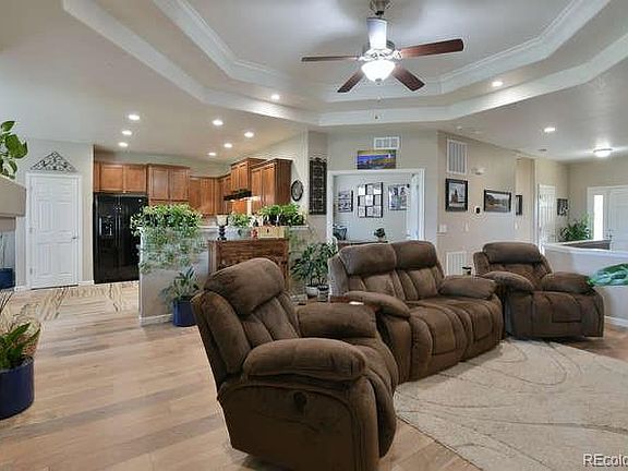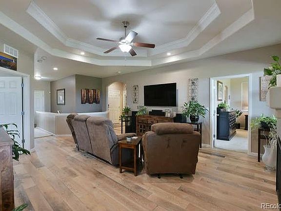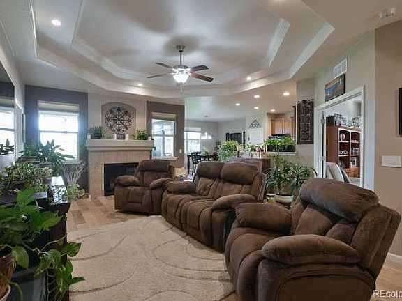 Ranch style home backing to a greenbelt with Mountain Views! Lots of upgrades throughout, including interior paint, newer hardwood floors, LED lighting and an amazing deck. 3rd bedroom can be used as a study or nice guest room. Basement is also built-out with another bedroom, bar and theater room with genuine sandstone finishes. Built in 2012 it has a nice master suite with a 5-piece bath and walk-in closet. Nice neutral colors and upgraded finishes throughout. Sitting on a quiet cul-de-sac, it has a 3-car garage and upgraded landscaping in the front yard and back yard. Enjoy watching the sunsets over the Rockies from your steel constructed deck overlooking the green belt. Lots of privacy. You won't find a nicer deck in this price range. Convenient location is close to everything. Easy commute to DTC, Downtown or south to Colorado Springs.