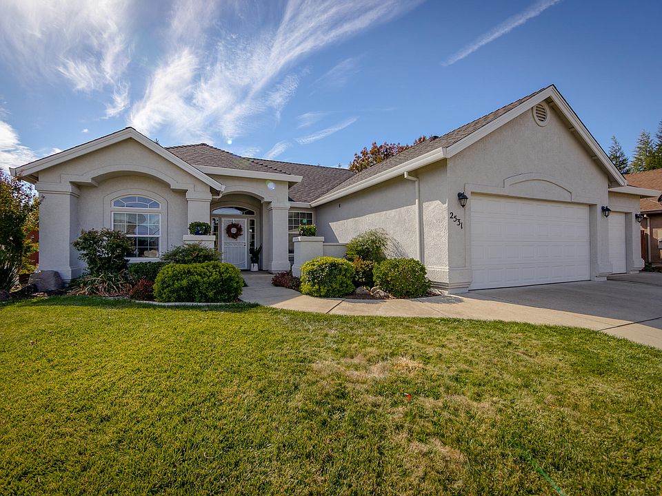 A home where you can hang your heart. This one owner home blends traditional style with a modern touch - such as warm wood flooring, transom windows, black appliances, and walnut cabinets. The great room lives up to its name with vaulted ceilings and a corner fireplace. Split floorplan offers a private owner's suite that has its own sliding glass door to a 14x16 Aluma-wood covered patio. The en-suite has dual sinks, step in shower, separate tub & a walk in closet. A bonus room that could easily be your next office or an additional bedroom, featuring a double door entry. Newer roof! Located at the beginning of a cul-de-sac, near McConnell's Lema Ranch with gorgeous walking trails, schools, university & college. Check out this lovely home today! CB165