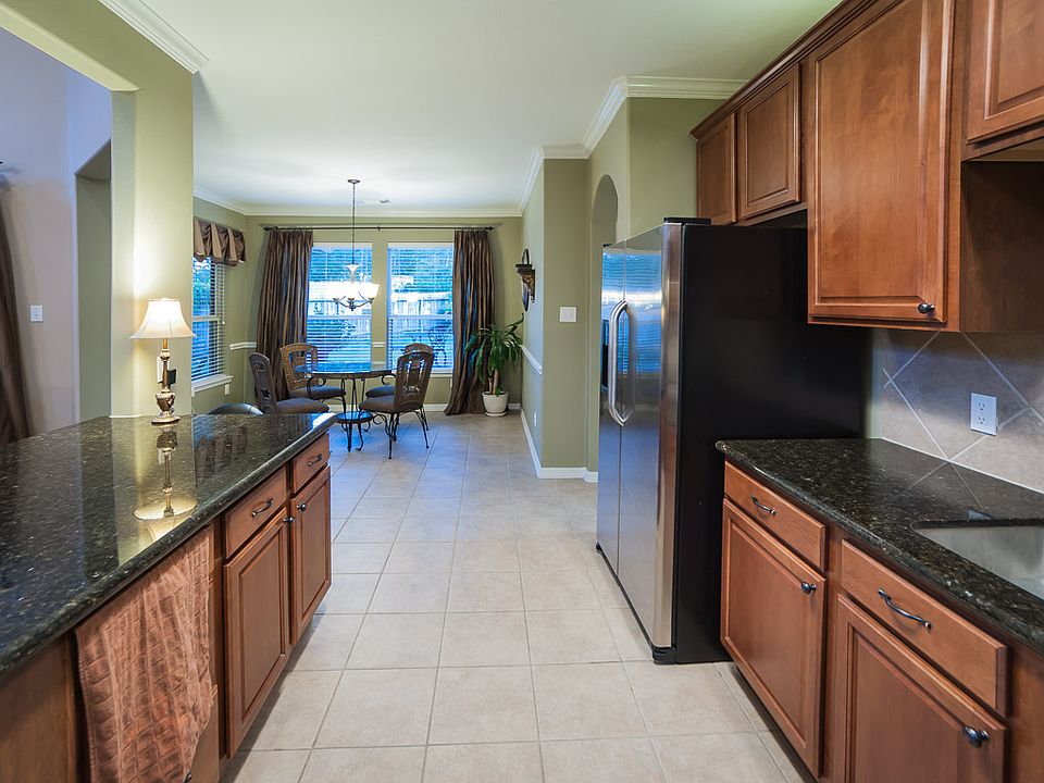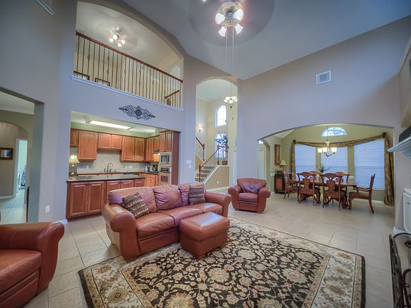 Amazing Castlerock home in gated Oakmont Village - close to The Woodlands & Exxon campus! Soaring ceilings, extensive tile flrs, neutral paint colors, beautiful trim work & built-ins throughout. Island kitchen w/granite counters, SS appliances & stained cabinets opens to sunny brkfast rm & den w/gaslog FP; elegant formal dining w/chair rail; study w/French doors; mstr retreat down w/sitting area & gorgeous bath; gamerm & 2 bdrms up; fenced yard w/covered patio surrounded by pristine landscaping.