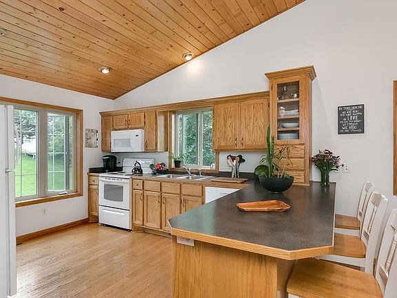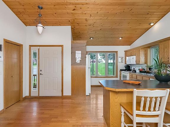 Directions 169N to east on cty rd 4, to 96th So. to 255th to 98th NW left on 98th to dead end/cul de sac, Fabulous rambler nestled on the banks of Hunter Lake. Enjoy a peaceful life on the lake w/the conveniences of city living. Private setting w/over 65' of lakeshore. Inside offers a great open floorplan w/vaulted tongue groove ceiling, gleaming hdwd flrs, oak cabinets, bkfst bar, 3 BRs plus a full BA. W/out LL ready for your future finishing ideas. All this plus new carpet, fresh paint, new D/W, newer roof, sec sys, 3 car gar & great cul-de-sac location. Fish, float or simply take in the serenity.