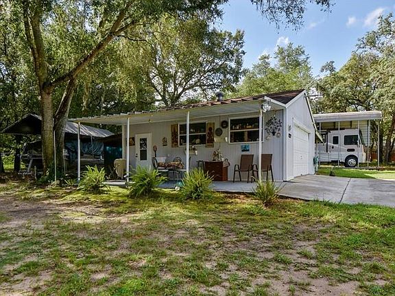 BRING YOUR TOYS! Country living within 10 minutes of downtown Tavares. Situated on almost 2 acres of manicured landscaping. Property has a round about driveway, two car garage, a separate storage building and also an RV cover. This is must see for those with toys. Home has been well kept. Has a front covered porch and a separate screened in room.