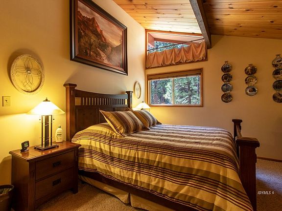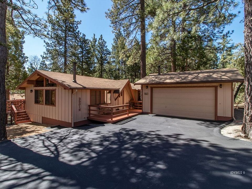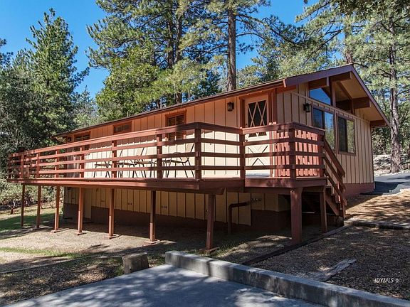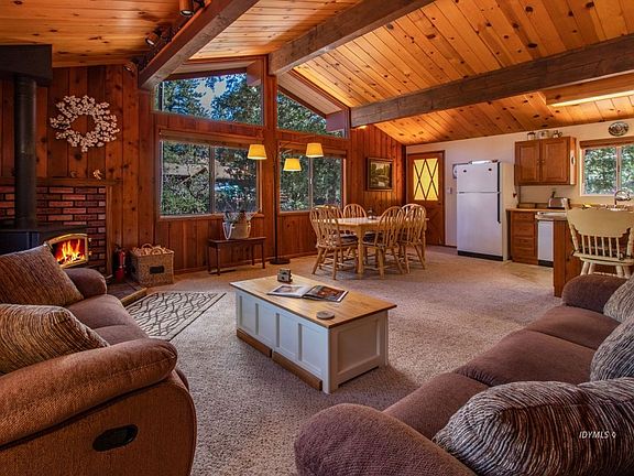 This beautiful, warm 2 bed and 2 bath mountain home is nestled in the pines and manzanita trees of the Pine Cove community of Idyllwild, This immaculate home boasts pride of ownership, and this "just right sized" cabin invites you in the moment you open the door. Vaulted knotty pine ceilings throughout give the living spaces an open feeling. The adjoining kitchen and living room areas with corner wood stove make everyday living comfortable. The guest room has a wall bed that stores vertically inside an attractive, space-saving cabinet. The master bedroom and bath suite is spacious, and includes hallway access to the attached two car garage. Decks front and rear of the cabin provide great spaces for outdoor entertaining. The included lot on the side of the home gives privacy and a lovely grove of manzanita trees provide a charming forest setting. There is an additional concrete parking pad at the rear of the property which can accommodate a boat or small RV. Three bear carvings and a rustic eucalyptus bench are included, and provide functional low maintenance yard decor. This home is truly turn key, all you need is your day planner.