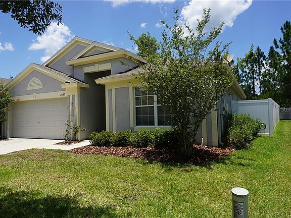 Welcome to the beautiful golf-course community of Lexington Oaks in Wesley Chapel, FL. This lovely home offers 3 bedrooms, 2 baths, 2 car garage with 1525 sq ft situated on a large lot, surrounded by privacy fence backs up to a conservation area. The private backyard has an enclosed herb garden, plenty of room to install swimming pool and/or large lanai. The living/dining room combo is spacious high ceiling with open floor plan. The Master bathroom has dual sinks, garden tub, separate shower, enclosed toilet room, and large walk-in-closet. The second bathroom has a shower-tub combo with easy access to the front bedrooms. The home is located in the Maywood Village, with close proximity to the Wiregrass Mall, major highways, restaurants, Tampa Premium outlet and short commute to I-75. Low HOA annual fee of $60.00 with the CDD bundled into the yearly taxes. Home is easy to show same day.