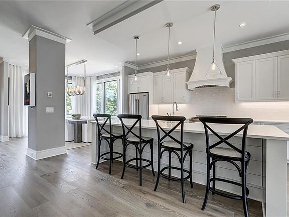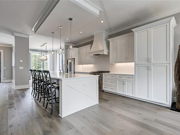 • Kitchen Features: Breakfast Bar, View to Family Room, Stone Counters, Kitchen Island, Cabinets White, Wine Rack
