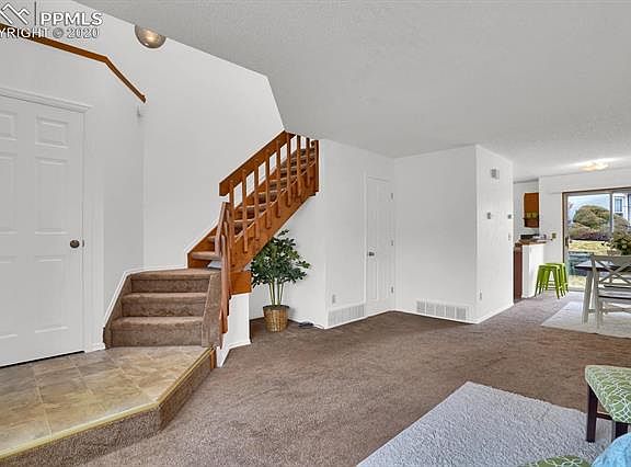Adorable, move in ready townhome close to UCCS, shopping and trails! The bay window in the living room makes a great, cozy reading corner & allows lots of natural light to pour in. The master bedroom upstairs has ample closet space & adjoins to the master bathroom. Across the hall, set up a wonderful office, or turn it into a 2nd bedroom. Tons of possibilities here! Make yourself comfortable outside on the back patio & enjoy the beautiful view of the bluffs while you drink your morning coffee & soak up the sunlight.
