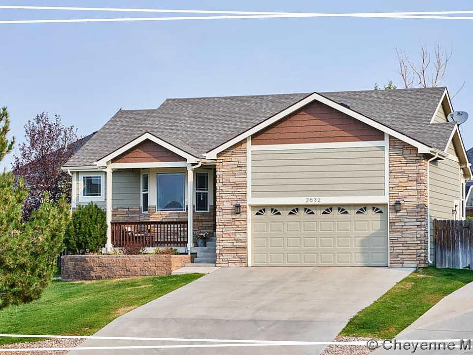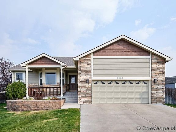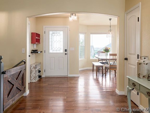 This beautiful south facing 5 bedroom, 3 bath ranch style home has fabulous views of Cheyenne and is located in a quiet cul-de-sac. Updated throughout you will love the gorgeous hardwood floors, open floorplan, vaulted ceilings, stainless steel appliances, gas fireplace, A/C and main floor laundry with a private master suite that has a cozy bay window. The spacious back-yard features a large patio with a covered pergola perfect for entertaining or just relaxing. Welcome home!