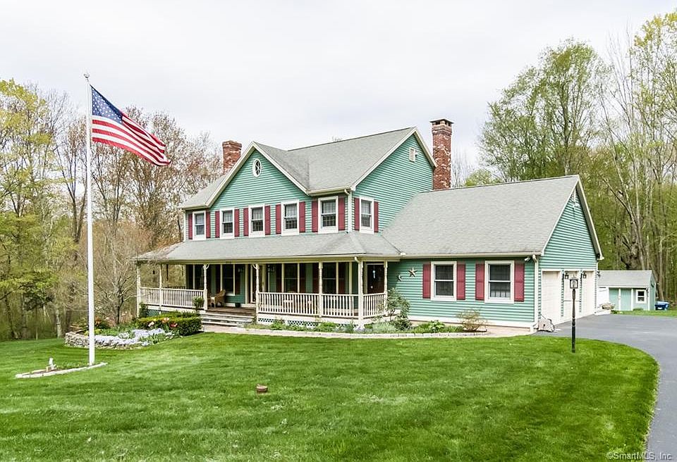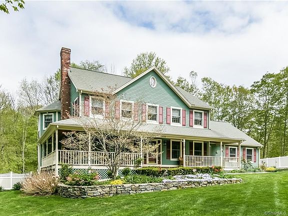 Custom Farm House Colonial situated on 5.26 acres has everything you need. Charming front wrap-around porch and large deck overlooking the back. Private property overlooking perennial gardens, trees and stone walls adorn this home. The outdoor Kitchen w/ stone patio, fire pit and heated pool extends the living space to the outdoors for more entertaining space. The main floor includes some open concept in the kitchen/family room to enjoy easy entertaining and viewing the fireplace from both areas w/ radiant heated floors. A formal dining room, formal living room with fireplace w/ hardwood floors. Bonus room on main floor includes bedroom/office with full bath (in-law set up). Laundry & mud room. Second floor has a large Master with a spacious en-suite boasting with natural light. One full bath, 3 more bedrooms and access to walk up attic that's ready to be reimagined. Basement includes a walk out to the yard, family room, gym, and storage. The 3 car garage w/ radiant heated floors pull down access to a full standing attic w/ possible access to interior of house. The home has been meticulously maintained. Brand new architectural shingles lifetime & copper flashings was just installed. New 2 zoned hydro-air heat. Septic is set up for 5 bedrooms. A cul-de-sac of 5 homes gives you privacy (no fees). Homes split the cost of low driveway maintenance. Convenient to shopping & commuting access, this idyllic spot is the perfect sanctuary.