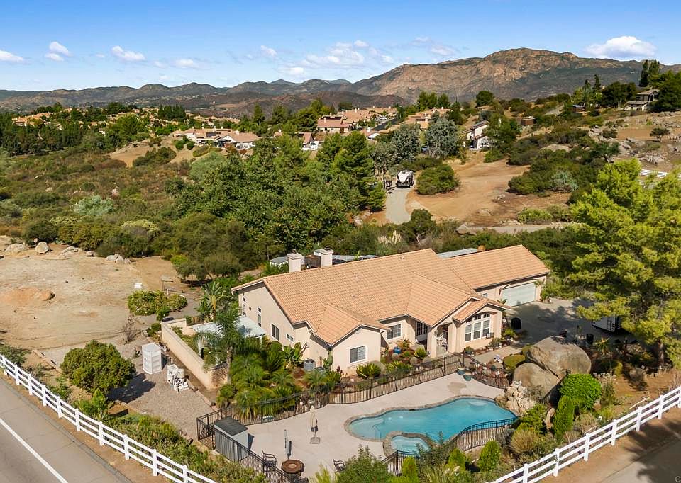 Welcome to this stunning one story home nestled in the hills of Alpine. This beautiful property boasts 2463 sq ft of living space and sits on a 2.12-acre lot and 2 car garage. As you step inside, you’ll be greeted by a spacious open floor plan with high ceilings and abundant natural light. Gorgeous living room opens a spacious dining room area. The gourmet kitchen is a chef’s dream, featuring granite and tile countertops, stainless steel appliances (extra-large Sub-Zero Refrigerator, 2 Convection Ovens and 5 gas burner stove) and a large island with seating. The family room has an inviting fireplace and overlooks the massive yard. The primary suite offers a peaceful retreat featuring walk-in closet and a luxurious bathroom with a soaking tub and separate shower with dual Fireplace to enjoy. Outside, enjoy the well-maintained front yard which includes a pool with waterfall and spa. The spacious back yard you can enjoy entertaining or relaxing with room to roam and play. Wander through the orchard which includes grapes, peaches, tangerines, lemons, orange, grapefruit, pomegranates, apricots and green apples. Located in a desirable neighborhood, this home may have a possibility to build a second home. Don’t miss this opportunity to make this exceptional property your new home! Seller will pay off the solar.