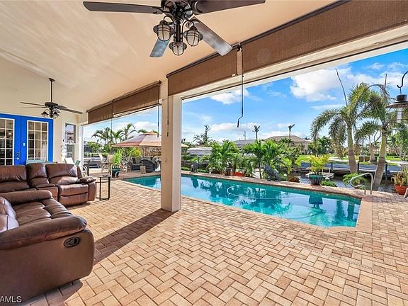 Easy 5 min Direct Access to open water. No bridges, sailboats ok! No flooding in home and survived Hurricane Ian. Turnkey includes furniture, decor, and electronics. Just bring your luggage or start generating vacation rental income today. NO HOA! All Assessments PAID! Has all the premium upgrades; metal roof,16ft ceilings w/a huge cupola that naturally illuminates the home,wrap around dock w/10k lb. boatlift,new decking & new sea wall cap in 2020, 20" tile flooring,updated custom landscaping,large front porch,display shelving throughout,French doors,large pocketing rear sliding glass doors, granite counter-tops throughout, custom window treatments, custom paint, over-sized driveway and garage, energy efficient water heater, large laundry room w/utility sink & cabinets new pool heater & electrical, new pump, lights in bedroom & hallway, new fans outside, new hot-tub & wiring, total house surge protector, hurricane shutters. Brand new; aluminum fence, new appliances, new garage opener. New boat canopy and hurricane rated storm shades.