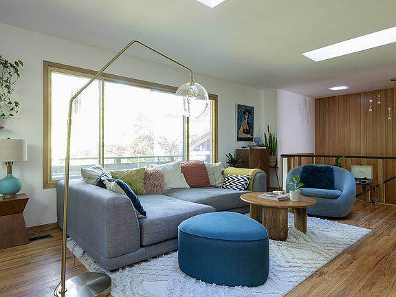 A sophisticated, beautifully maintained mid-century split-level you'll love coming home to! Perched high above street level and surrounded by trees in a forested setting, this 4-bed, 2-bath home seamlessly blends updated contemporary convenience with timeless mid-century modern design. Pristine hardwood floors, designer neutral tones, and an open, airy multi-level layout create the perfect canvas for your personal style. Larger windows and two skylights bathe the entire space in natural light. The wonderfully functional kitchen features high-end stainless steel appliances, open shelving, illuminated pull-out drawers, and a separate dining area. The large primary bedroom offers generous closet space, while the updated full bath boasts a tiled tub/shower and sleek new fixtures. A well-sized second bedroom upstairs is perfect for guests or a home office. The lower level is thoughtfully appointed with a bedroom, a full bath, and a spacious bonus room / fourth bedroom offering flexibility for work, play, or relaxation. Both the upper and lower living areas showcase their own double-sided fireplaces, adding coziness and charm, especially during the city's colder months. Step outside to discover a wrap around deck, perfect for entertaining or simply enjoying the peaceful moments in nature among mature growth trees. A single-car garage provides ample room for storage and a counter-top project space. Full washer/dryer included. Enjoy the vibrant local community with favorites like the Hillsdale Farmers Market, Ida B. Wells-Barnett Outdoor Pool, Baker & Spice Bakery, Salvador Molly's, and Please Louise right nearby, plus all the best of Multnomah Village just one mile away. Super easy access to I-5 gets you anywhere in the city fast. Public transit at the end of the block, hiking and biking trails, and a quick commute to OHSU, VA, Lewis & Clark, Downtown, and Northwest Portland make this location a hidden gem. Come experience this inviting blend of comfort, style, and convenience! ** Please respond with a bit about yourself and contact information (cell/email). - This is not considered an ADA accessible dwelling unit. Applications are accepted on a first come, first served basis. Applicants must read the rental criteria before submitting an application. At least one adult in the applicant group must view the property in person before we will process your group's applications. Applications are $47 per adult, which covers the screening fee (criminal history, credit history, rental history, employment and income verification, etc.) All viewing times are by appointment only. - Accepting Applications: 4/8/25 after 10am PCT (Per City of Portland regulations, any applications submitted before 10am on 4/8/25 will have an 8 hour hold period and be considered submitted at 5pm.) Renter responsible for gas, electric, water/sewer Owner pays for garbage/recycling & quarterly landscaping No smoking firm