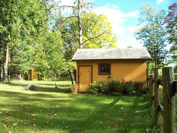 19.93 acres fenced for horses-tack house-26x40 pole shed w/ horse stalls-chicken coop-sauna-2-car detached garage-gardens. 2 bd-1 bth home has newer roof, all new windows, family room addition w/woodstove.Very cozy home -beautiful setting- long private drive.