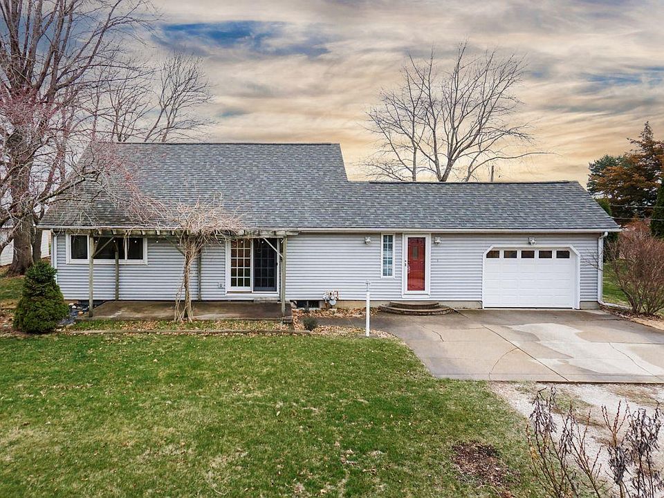 Inspiring views! Proudly displaying Cape Cod style that evokes calm safety in a storm, this 4-bedroom, 2-bathroom example of the form is perfectly situated in Hudson. The home is nearby of Green Gables Lake Road Inn and across the road from Lake Bloomington. Enjoy pleasant views of the natural woods and Lake Bloomington. The interior includes hardwoods, natural lighting, and ready to be turned into your perfect home.. The kitchen opens seamlessly onto the dining room, living room, and four seasons room. The 4 bedrooms, distributed on multi-levels for privacy, are ready for your vision. Unfinished basement provides extra storage space. Attached one-car garage. Exterior includes a dependable pressure-treated deck and patio. The only missing ingredient is you.