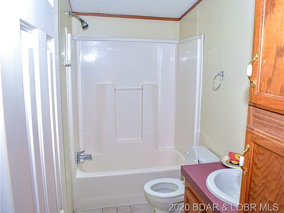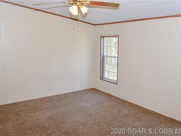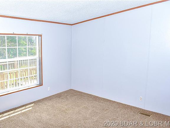 Affordable living close to Lake of the Ozarks on 5 hard to find ACRES. Large manufactured home on piers with large fenced in yard and shady setting. Has detached building that houses the private well. Massive living room with fireplace and glass door leading out to deck overlooking back yard. Kitchen is oversized with large center island and dining area. Wall of windows makes the kitchen that much more appealing. Master bedroom has full bath and large walk in closet. 2 guest bedrooms share a full bath and good sized laundry room. All one level living just off blacktop road. Just a few miles to Coffman Beach Public lake access and close to gas station and City limits bar/restaurant. This home was bank owned and information is limited. Seller and Realtor make no warranties and all information should be checked for accuracy by interested parties.